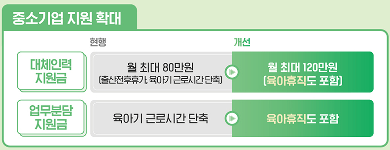 육아휴직 최대 기간도 1년 6개월로 연장됩니다.